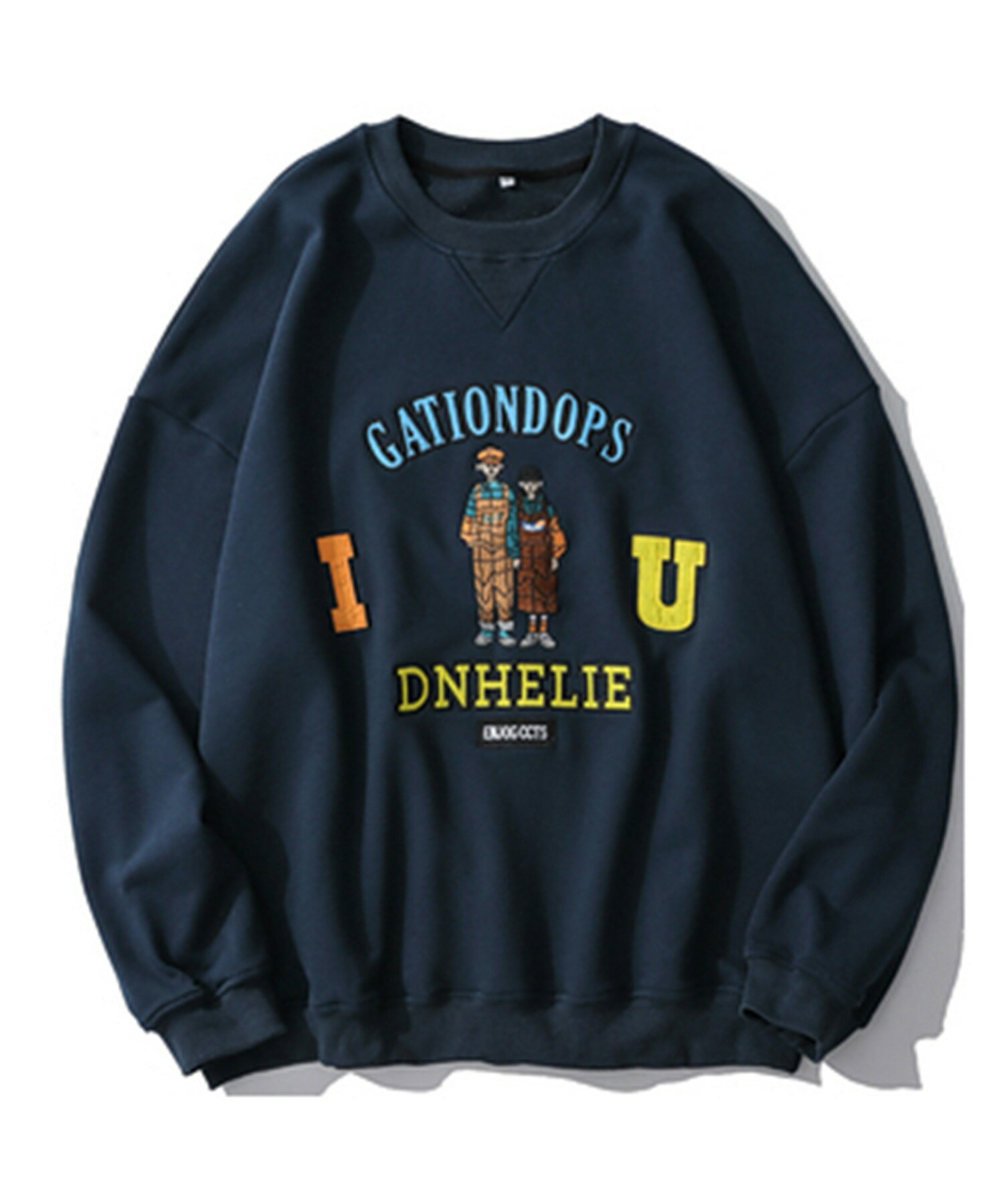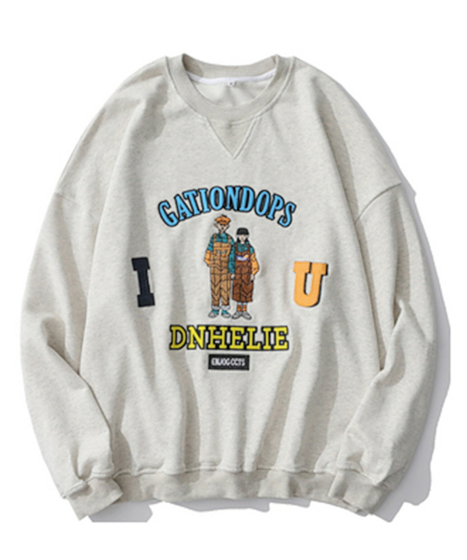 カップル ペアルック トレーナー お揃い 春 秋 ビッグシルエット トレーナー メンズ レディース オーバーサイズ ユニセックス 韓国ライク おそろ オルチャン ファッション レトロ アメリカ ベア ストリート 【HOOK】*