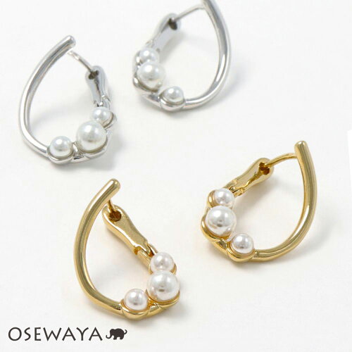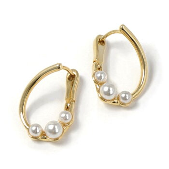ピアス ニッケルフリー メタル カーブ スリー パール フープピアス | アクセサリー レディース 女性 大人 プレゼント ギフト 結婚式 誕生日 おしゃれ オシャレ かわいい 可愛い シンプル