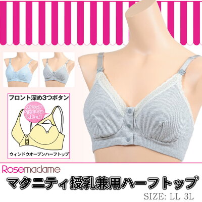 授乳ブラ 前開き ノンワイヤー ローズマダム LL・3L (マタニティブラ 綿混 授乳 妊婦 産前 産後 下着 インナー ハーフトップ LL 3L B85 C85 D85 E85 F85 G85 H85 G90 H90)【在庫限り】