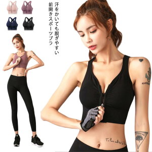 ハイサポート 揺れない フィットネスブラ スポーツブラジャー ヨガブラ 前開き しっかり スポブラ ファスナー 【送料無料】スポーツブラ L ホック サポート 筋トレ ヨガ ジュニア ヨガウェア スポーツ用 インナー スポーツブラジャー ジム 無地 S M ノンワイヤー