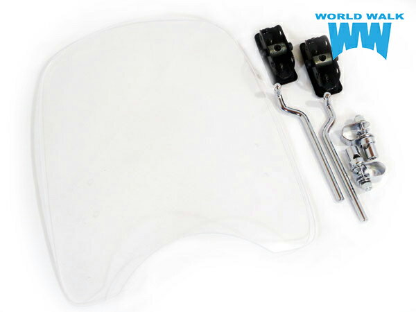 | 商品概要 ・メーカー:worldwalk ・商品名:汎用ウインドスクリーン ・カラー:クリアorスモーク ・品番:ws-03l ・付属品:取り付けステー・ボルト | 適合情報 汎用WS-02W発売以来、そのスタイリッシュなデザインから、様々な車両にお乗りのお客様にご満足頂いておりましたが、 お客様からのご要望として、 「もう少し大きなものが欲しい。