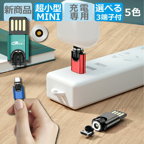 【最小 超短い ミニ USB充電ケーブル 当店でしか買えません】DAIAD マグネット 3in1 USB充電アダプター UBS充電器 超短い充電ケーブル 充電専用 MicroUSB Type-C Lightning iPhone Android スマホ 磁石 ポータブル 両面 デュアルUSB