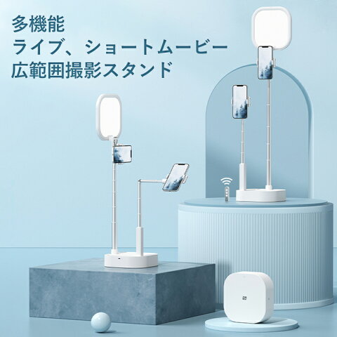 ご奉仕価格!【特典プレゼント】最新作 広範囲撮影 スマホスタンド ライト 多機能 俯瞰撮影 自撮りライト 超クリアな側面発光技術 Bluetooth リモコン デュアルスティック 360° 自由に回転 大容量バッテリー搭載 持ち運び便利 iPhone/Android等スマホ対応