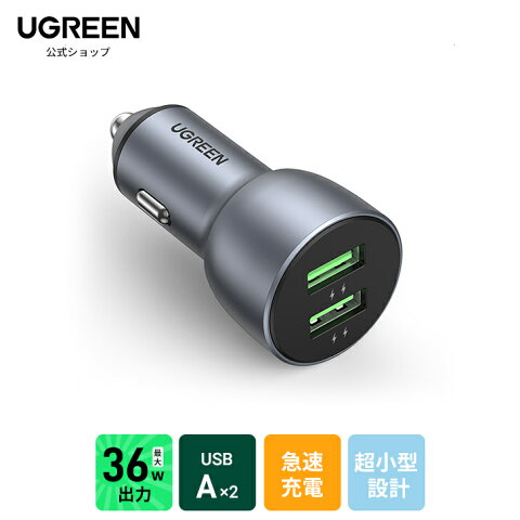 UGREEN シガーソケット USB 車載充電器 2台同時充電対応 カーチャージャー USB QC3.0急速充電 36W【デュアルQC3.0ポート】 充電器 急速充電 車載充電器 車 シガーソケット 充電 2口 usb スマホ iPhone Android 各種対応 小型 軽量 コンパクト 小さい スリム 12-24V車