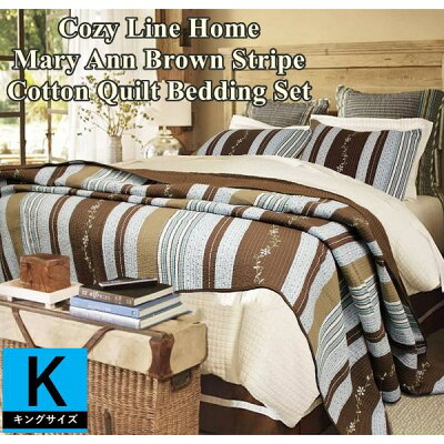 【送料無料+最大6%割引クーポン】【キング】 Cozy Line Home コージーライン ホーム Mary Ann Brown Stripeリバーシブルベッドキルト3点セット 花柄ベッドカバー ベットカバー ベットキルト 寝具 布団カバー