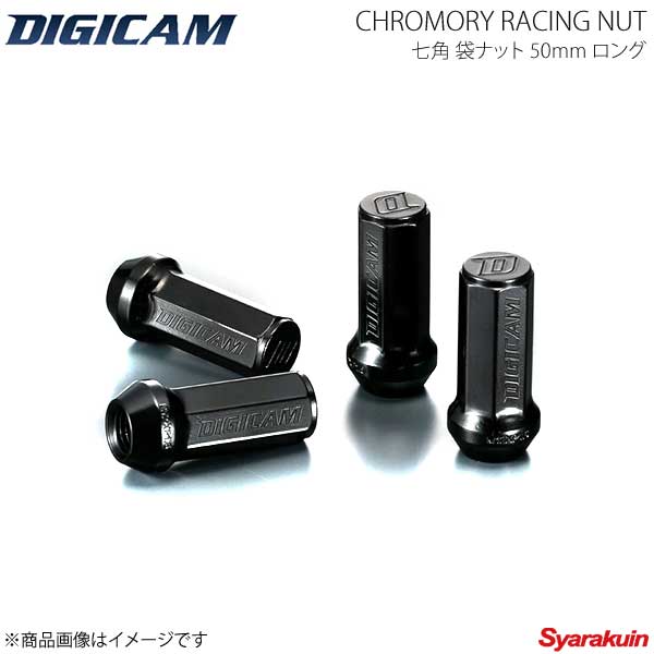 DIGICAM クロモリ・レーシングナット 袋タイプ P1.5 7角 17HEPTAGON 50mm/ロング ブラック 16本入 ライフダンク JB3/JB4 H12/12〜H15/8 CN7F5015BK-DC×4