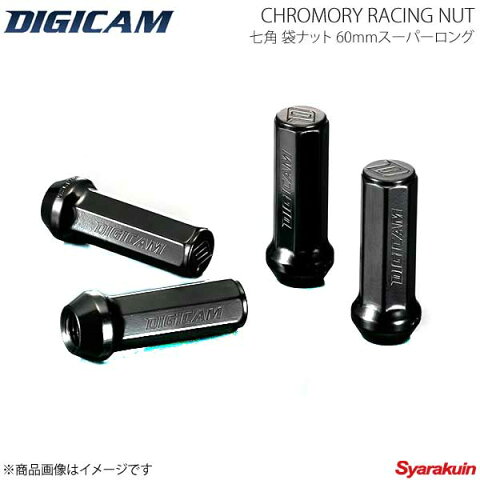 DIGICAM クロモリレーシングナット 袋タイプ P1.5 7角 17HEPTAGON 60mm/スーパーロング ブラック 20本入 アコードツアラー CW1/2 H20/2〜H25/3 CN7F6015BK-DC×5