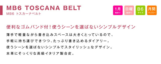オマケ付!!※ご注意※この商品は予約販売です。手帳 WEB限定 2023 年 1月始まり 10月から使える B6 / マンスリー 日曜始まり MB6-トスカーナベルト m